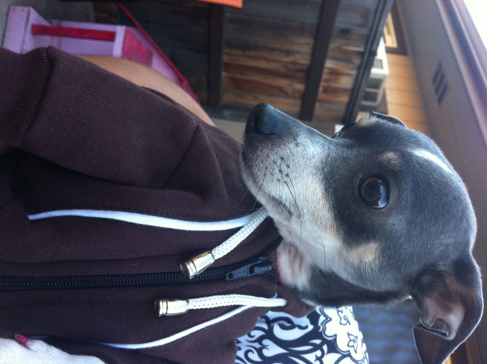 So while not a huge fan of the clothes wearing... I can see sweaters in his future... whether he thinks they are great or not. He doesn't have a any "extra fat" on him and in the past few days, the weather has cooled... He shivers outside sometimes. I imagine in the winter months, he will be quite chilly and will learn to enjoy the "sweaters". I'd like to think I am just getting him ready!